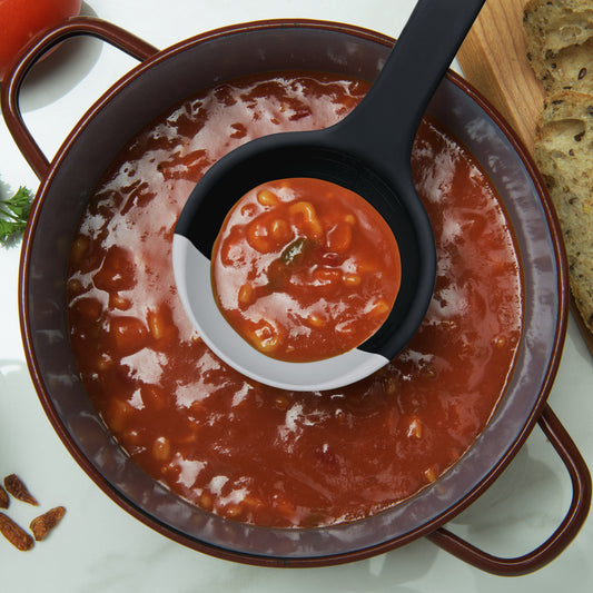 Patented Soft Top will mold to your pots and pans to scoup up very last drop.